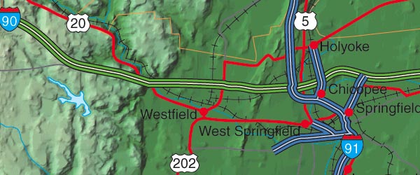 ![]() Detail View of the Cartographic style relief rendering when placed under the Vector EPS map. Any of the 5 relief styles may be used as alternative background textures to customize this map. Contrast of the relief map layer may be dimmed by adjusting the opacity - for Massachusetts is set to 60%. Select the Relief & EPS Map Package of Massachusetts option to download this style map collection. |