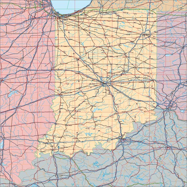 Detail view of EPS Vector Map of Indiana - the land fill color is switched on.