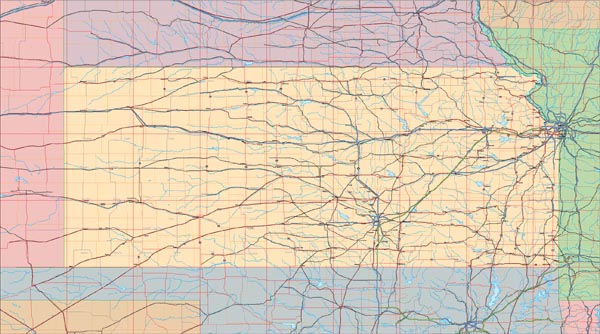 ![]() Detail view of EPS Vector Map of Kansas - the land fill color is switched on. The EPS Vector map for Kansas has 25 layers which may be individually modified or removed. Select the Vector only EPS map of Kansas option to download this style map. |
