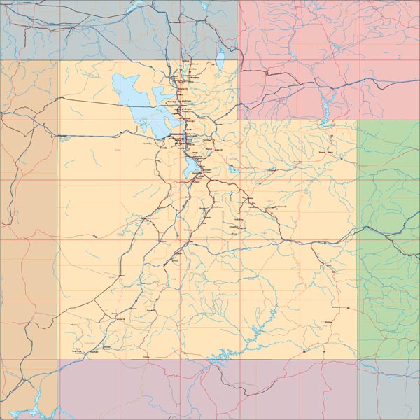 Detail view of EPS Vector Map of Utah - the land fill color is switched on.